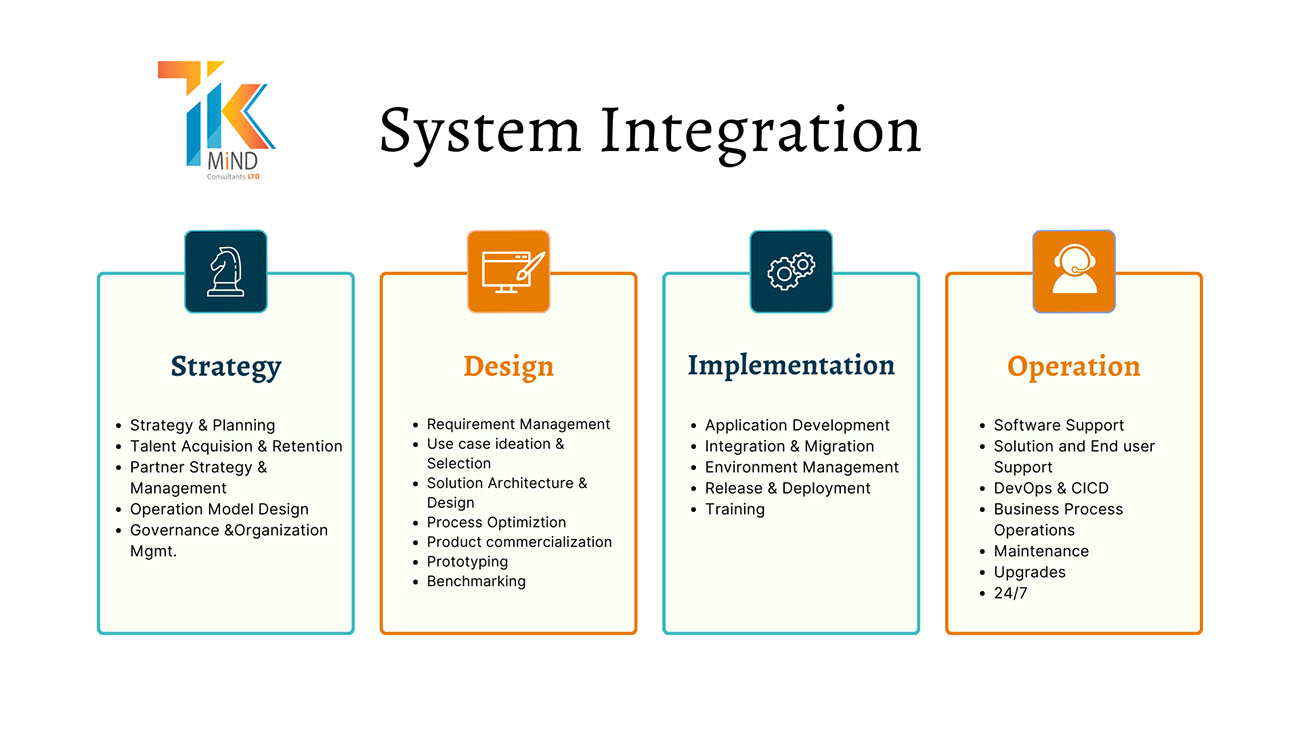 Technology is always changing, and businesses need to change with it to stay competitive. System integration is a process that can help businesses do that. Whether you are considering an ERP solution to replace custom applications or consolidating assets from M&A activity, TKMind can help you navigate the myriad of issues you definitely will face. We have more than 20 years of experience in enterprise applications.